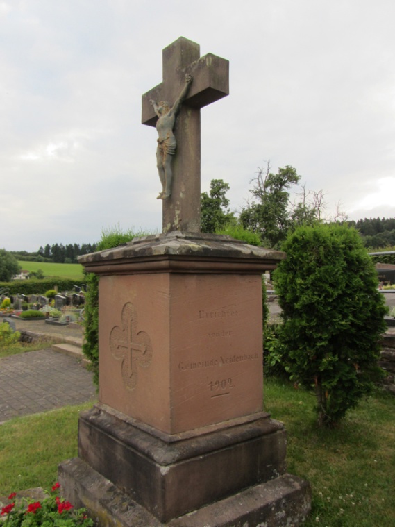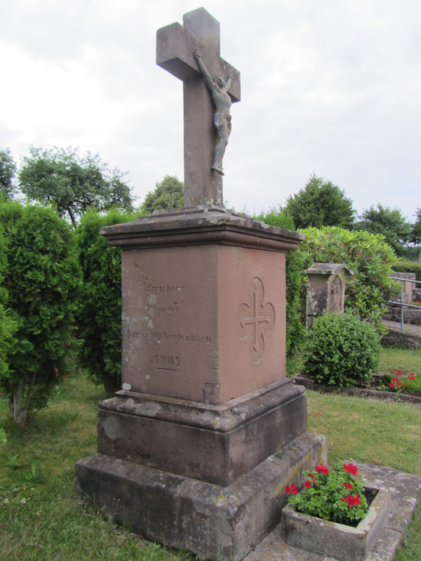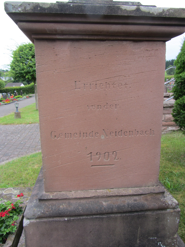 Der 1901 angelegte neue Friedhof erhielt bereits ein Jahr später ein Friedhofskreuz vom damals üblichen Typ. [...] Die auf beiden Seiten des Unterbaus identisch angebrachte Inschrift nennt als Errichter die Gemeinde Neidenbach, die nach einer aus französischer Zeit stammende Verordnung für die Anlage und Pflege des Friedhofs zuständig war.